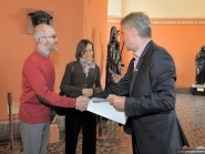 Członkowie Towarzystwa Przyjaciół Muzeum Narodowego w Szczecinie spotkali się w niedzielę, 21 czerwca 2015 r., w Gmachu Głównym szczecińskiego Muzeum na Wałach Chrobrego. Spotkanie było okazją do zobaczenia dwóch zakupionych ostatnio przez TPMNS obrazów. Na przybyłe na spotkanie osoby czekało również wiele niespodzianek - w tym m.in. loteria z nagrodami w postaci publikacji Muzeum. (fot. Jan Surudo)