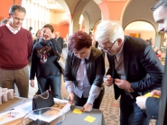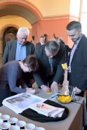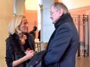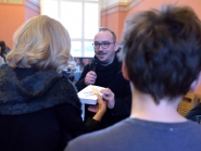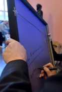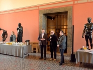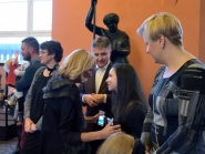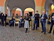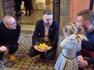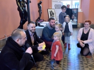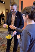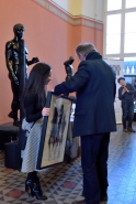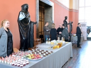 Po obejrzeniu wystawy czekał na gości drobny poczęstunek ufundowany przez jedną z zaprzyjaźnionych ze Stowarzyszeniem firm. Wszyscy członkowie naszego Towarzystwa wzięli także udział w tradycyjnej loterii, w której tym razem - prócz ciekawych pozycji ksążkowych i płóciennych toreb z nadrukiem jednego z prezentowanych obrazów - był także obraz szczecińskiego malarza Macieja Woltmana, przekazany na loterię przez Fundację Ars Et Bonum. Zwyciężczynią losowania okazała się Pani Aleksandra, która nie kryła radości z wygranej. Każdy z gości otrzymał także okolicznościowy kubek z nadrukiem fragmentu obrazu Ludwika Augusta Mosta "Portret Emila Baesemanna", który należy do naszego Towarzystwa i jest również prezentowany na wystawie.