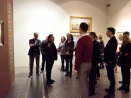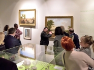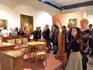 Licznie przybyłych gości powitał dr Dariusz Kacprzak - Zastępca Dyrektora MNS ds. Naukowych, a także Edward Osina - Prezes Towarzystwa Przyjaciół Muzeum Narodowego w Szczecinie. Po krótkich przemówieniach obaj Panowie zaprosili wszystkich zgromadzonych na główny punkt spotkania, jakim było oprowadzenie kuratorskie po prezentowanej aktualnie w Muzeum wystawie pn. "Biedermeier", poświęconej tytułowemu stylowi panującemu w pierwszej połowie XIX wieku, przede wszystkim w sztukach użytkowych, a charakteryzującego się prostotą, kunsztem i solidnością wykonania, szlachetnością użytych materiałów, służącą wygodzie funkcjonalnością. Naszym przewodnikiem po wystawie był dr Kacprzak, który w szczególach przedstawił nam większość z ponad 400 prezentowanych muzealiów, wśród których są obrazy, ryciny, meble, porcelana, szkło, złotnictwo, ubiory, akcesoria mody, zabawki i bibeloty.